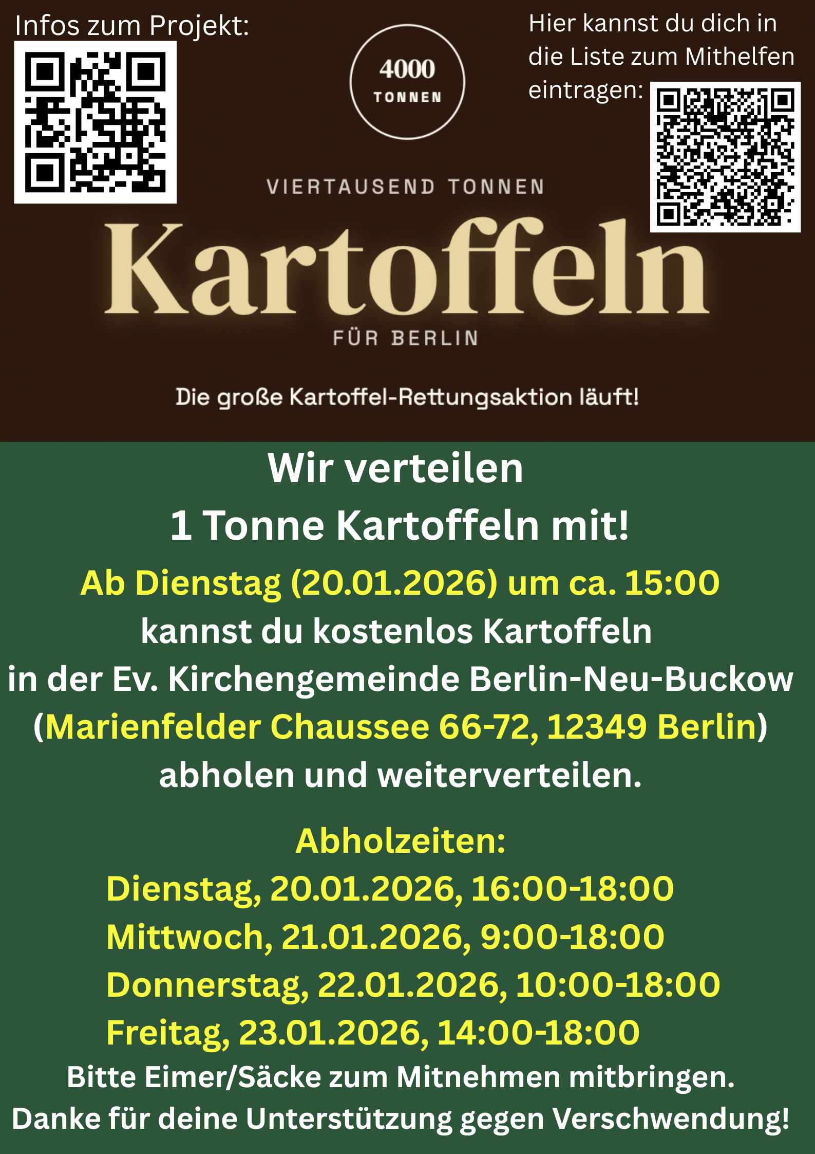 Wir verteilen 1 Tonne Kartoffeln mit!