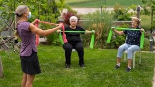 Sitzgymnastik findet zum Hauptteil im Sitzen statt, aber auch im Stehen, hinter und neben dem Stuhl. So kann das Gleichgewicht geschult werden und im Sitzen können die Gelenke und die Beweglichkeit kraftschonend trainiert werden. Es werden aber nicht nur Übungen mit Musik ausgeführt, auch kleine Sitztänze und Spiele gehören im Wechsel zum Programm. Trainingsgeräte können auch mal Handtücher oder kleine Wasserflaschen sein, die als Gewichte dienen.